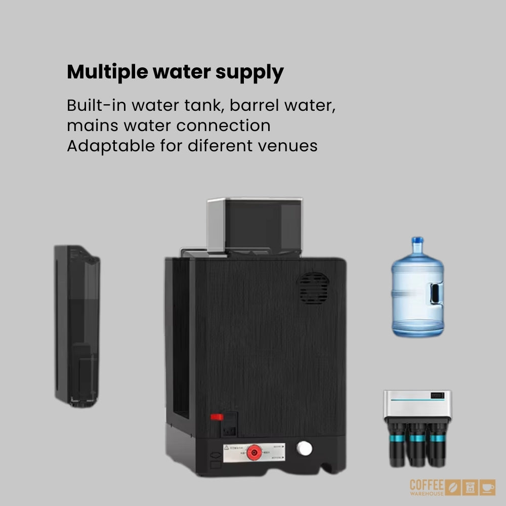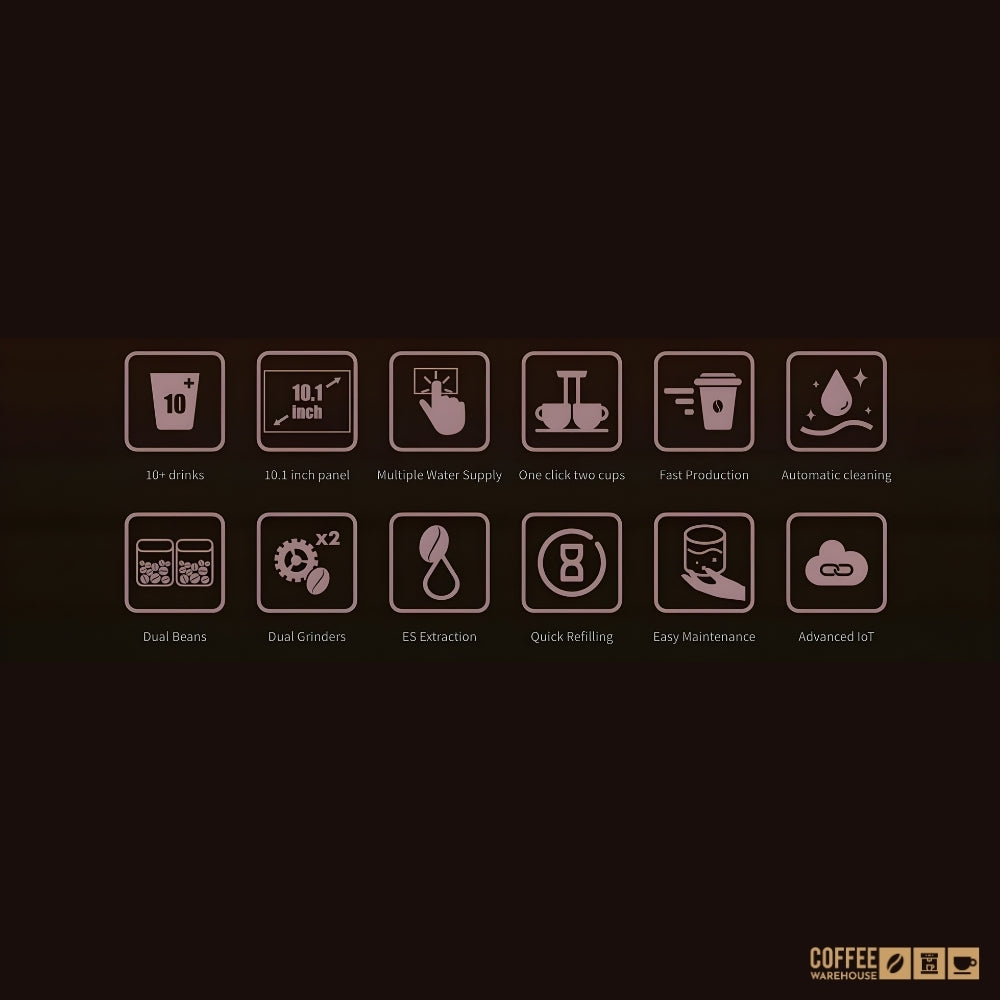 Designed with dual bean hoppers and two instant canisters, enabling over 15 beverage options, including coffee, milk drinks, and specialty recipes.